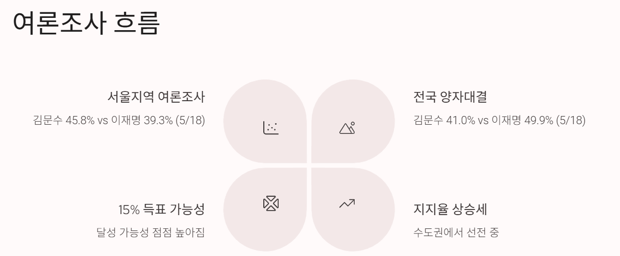 🔺 서울 지역 여론조사: 김문수 45.8% vs 이재명 39.3%