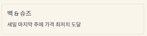 - 백 & 슈즈: 세일 마지막 주에 가격 최저치 도달